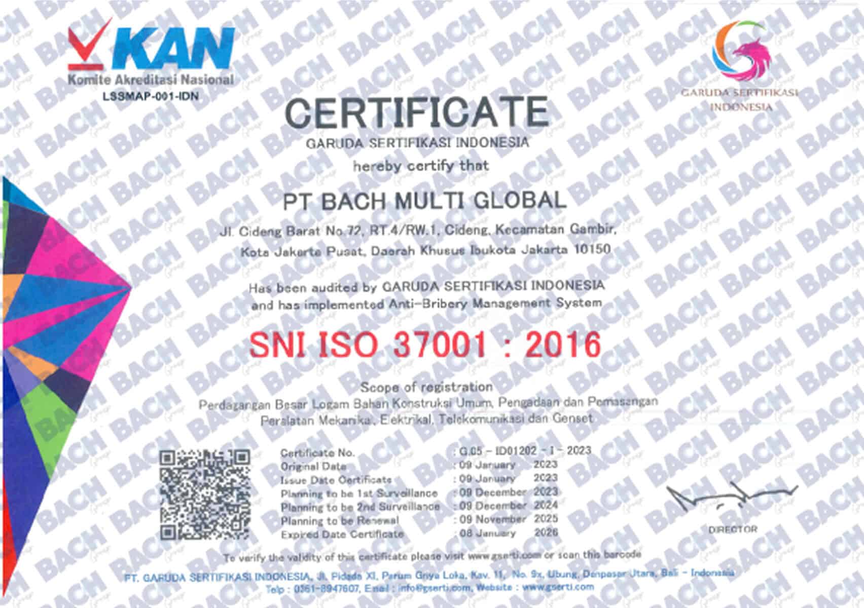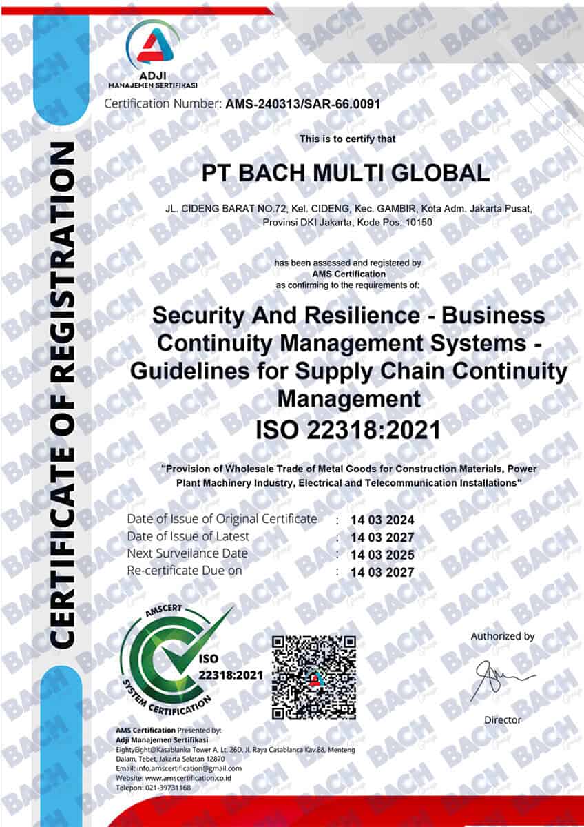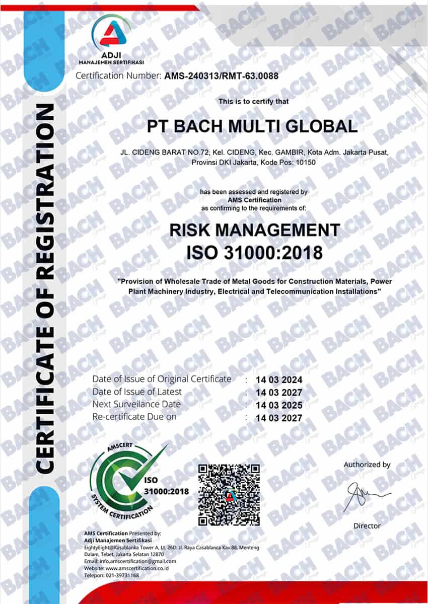 Certifications & AwardsProof of Our Quality Standards and Professionalism Certification Awards Certification Awards Certification PT Bach Multi Global Tbk’s commitment to quality standards, safety, and regulatory compliance at national and international levels.